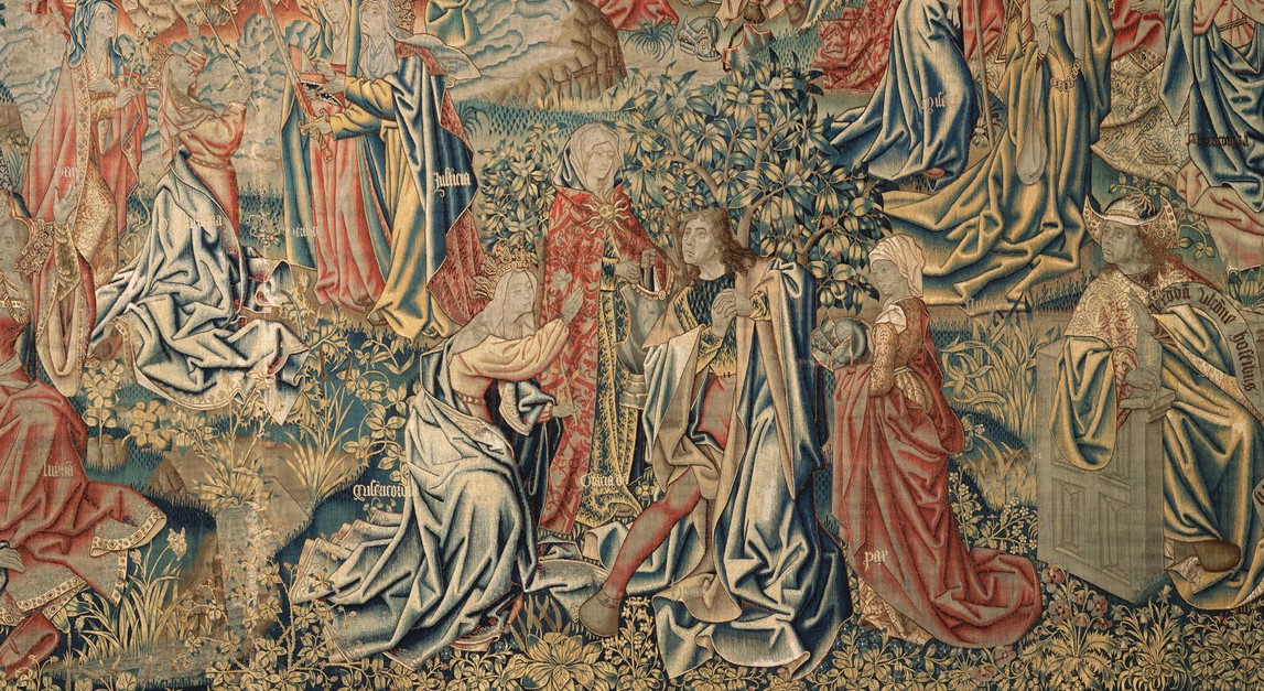 Tapestry of the Redemption of Man Previous Next Published August 14, 2016 at 1147 × 627 in The Northern Renaissance: Dürer to Holbein (2012-13) Peace and Mercy win the Promise of Redemption for Man, tapestry (detail) The Northern Renaissance, Queen’s Gallery, Buckingham Palace, Winter 2012-13