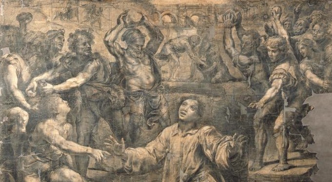 Giulio Romano: Stoning of St Stephen Previous Next Published August 14, 2016 at 681 × 373 in Late Raphael (2012-13) Giulio Romano, The Stoning of St Stephen (detail) Late Raphael, Louvre, Winter 2012-13
