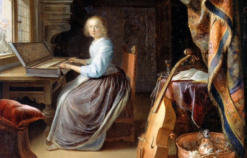 Dou: A lady at a clavichord Next Published August 11, 2016 at 813 × 521 in Vermeer and Music (2013) Gerrit Dou, A woman at a clavichord, Dulwich Picture Gallery (detail) Vermeer and Music, National Gallery, Summer 2013