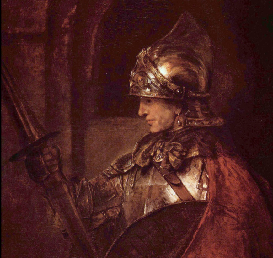 Rembrandt: A Man in Armour Previous Published July 26, 2016 at 870 × 822 in Rembrandt: The Late Works (2014-15) Rembrandt, A Man in Armour (Alexander), Glasgow Museums (detail)