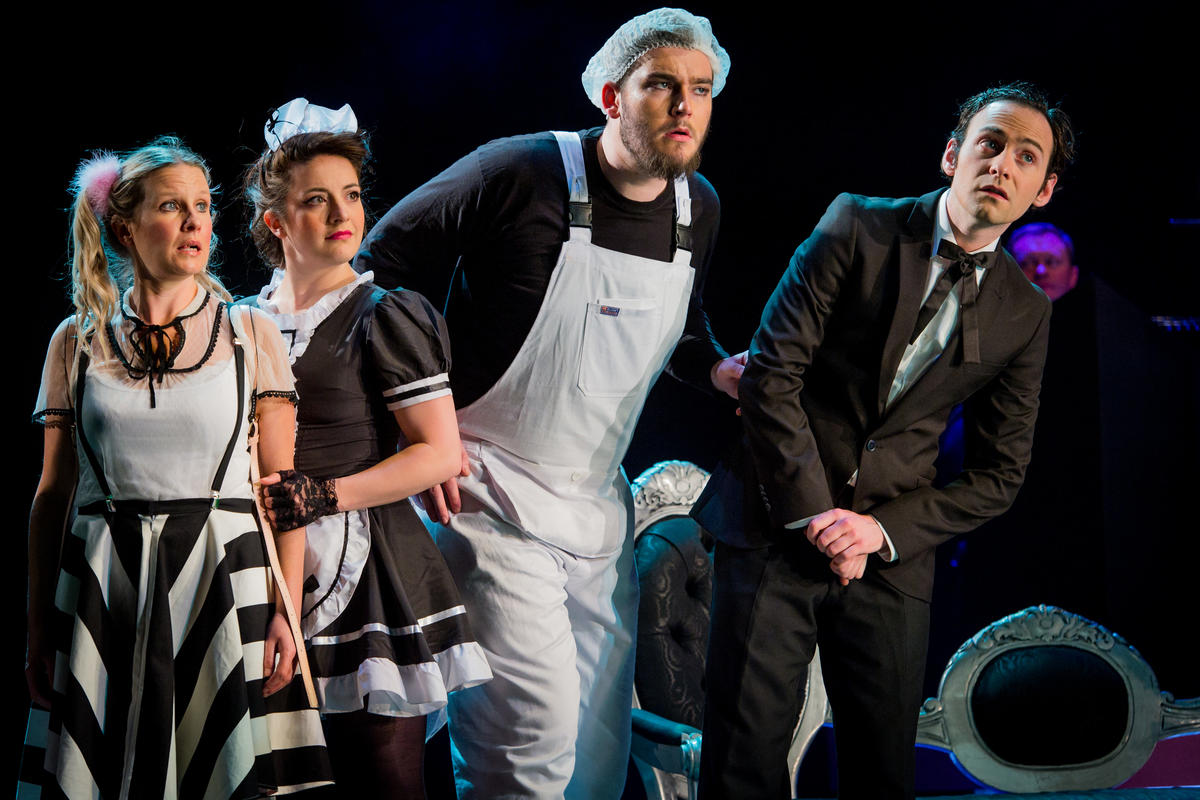 Handel: Xerxes Previous Next Published July 17, 2016 at 1200 × 800 in Xerxes (1738): George Frideric Handel Atalanta (Abbi Temple), the club’s maid (Chiara Vinci), Elviro (Matthew Durkan) and the club’s waiter (Laurence Panter) brace themselves for the storm Longborough Festival Opera, Britten Theatre, July 2015