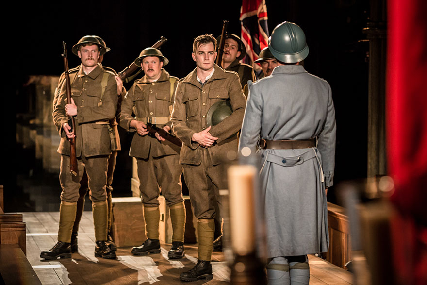 Henry V: William Shakespeare Previous Next Published July 16, 2016 at 880 × 587 in Henry V (1599): William Shakespeare Henry (Freddie Stewart) receives the Dauphin’s herald Montjoy (Marius Hesper) © Scott Rylander for Antic Disposition Antic Disposition at Temple Church, London, August 2015