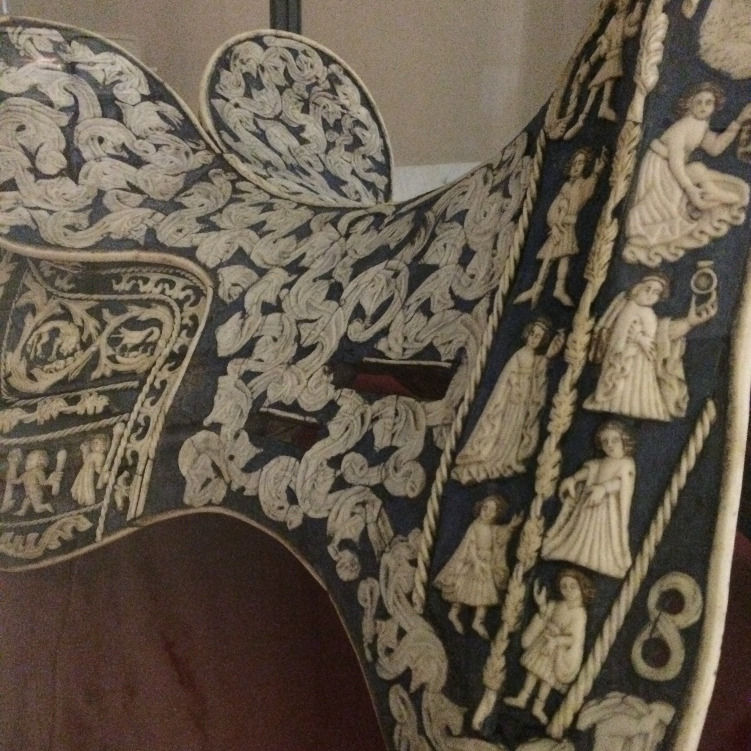Inlaid saddle Previous Next Published July 15, 2016 at 2448 × 2448 in Postcards from Vienna An early 15th-century court saddle inlaid with ivory