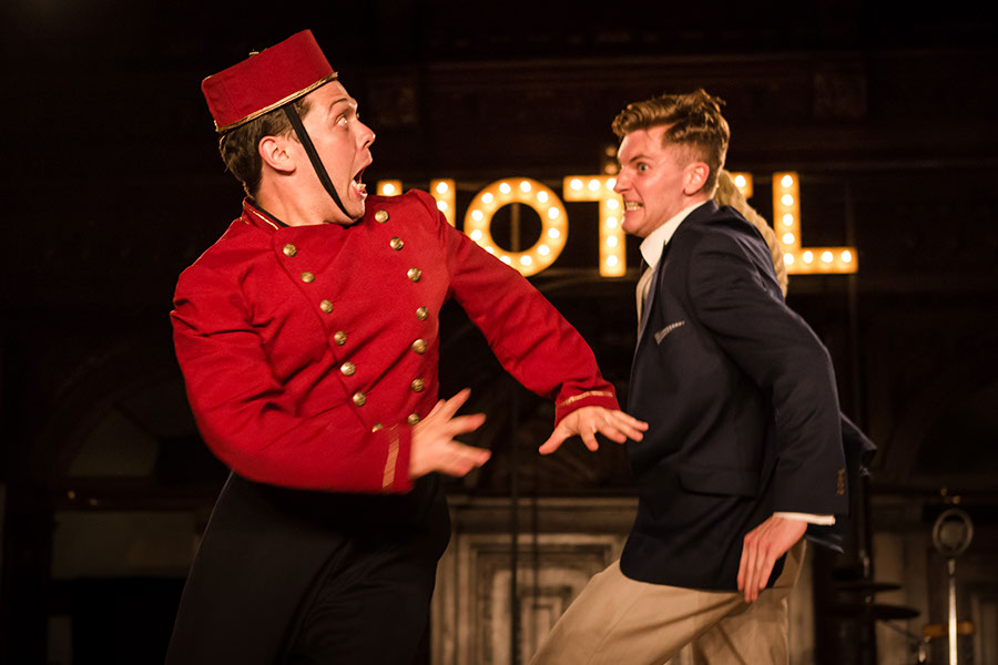 The Comedy of Errors: William Shakespeare Previous Next Published August 27, 2016 at 900 × 600 in The Comedy of Errors (1594): William Shakespeare Dromio of Ephesus (Keith Higinbotham) and Antipholus of Ephesus (Alex Hooper) © Scott Rylander Antic Disposition, Gray’s Inn Hall, August 2016