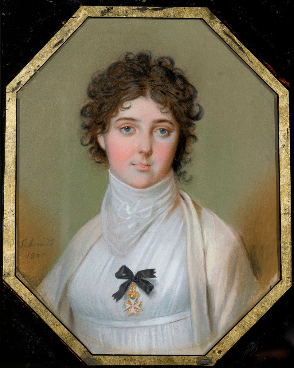 Schmidt: Emma Hamilton Previous Next Published January 8, 2017 at 1021 × 1280 in Emma Hamilton: Seduction & Celebrity (2016-17) Johann Heinrich Schmidt, Emma Hamilton, 1800, National Maritime Museum. She wears the Order of the Knights of Malta, presented to her for her humanitarian aid to the Maltese in 1799. This picture hung in Nelson’s cabin in the Victory at Trafalgar.