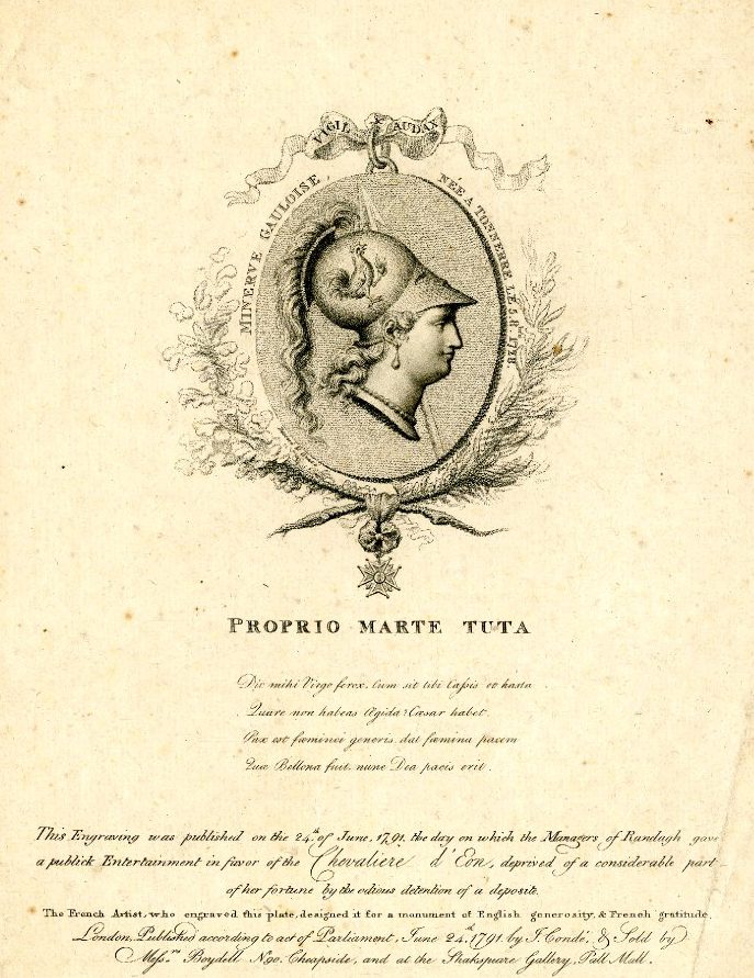The Chevalier d’Eon Previous Next Published February 27, 2017 at 687 × 891 in The Swashbuckling Life of the Chevalier d’Eon John Condé, Proprio Marte Tuta: a print in honour of the Chevalier d’Eon, 1791 British Museum, London, inv. 1888,0716.370