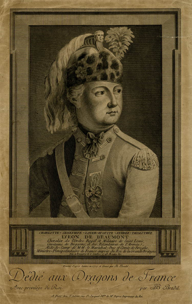 The Chevalier d’Eon Previous Next Published February 27, 2017 at 750 × 1186 in The Swashbuckling Life of the Chevalier d’Eon Jean-Baptiste Bradel, Portrait of the Chevalier d’Eon in Dragoon’s uniform, 1779 British Museum, London, inv. 1886,1221.12