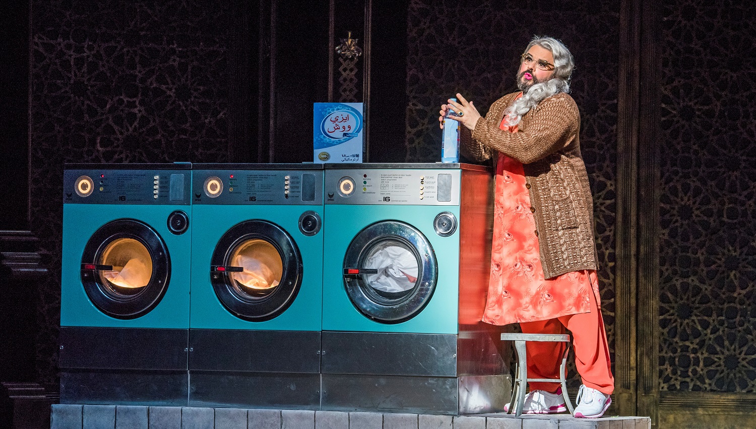 Hipermestra was always meant to be set in the Middle East. In the original production, the noble male characters wore Baroque approximations of Middle Eastern costume and carried scimitars at their sides. It’s not a massive leap from that to Vick’s sand-blasted world of desert, oil wells and wire fences: the innate savagery of the human soul thinly concealed by a film of extravagant wealth. Hipermestra and her sisters wear a variety of sumptuous wedding gowns trimmed with lace and ruffles; Elisa, her confidante, has a daring magenta silk suit hidden beneath her abaya and headscarf; the doomed grooms wear keffiyehs set off by gold-rimmed sunglasses and bishts over their suits; and Arbante wears army uniform with keffiyeh and dark glasses. Later, bullet-proof vests make an inevitable appearance and there are visual references – sometimes a trifle close to the knuckle – to certain terrorist organisations. But it’s an impressive concept.
