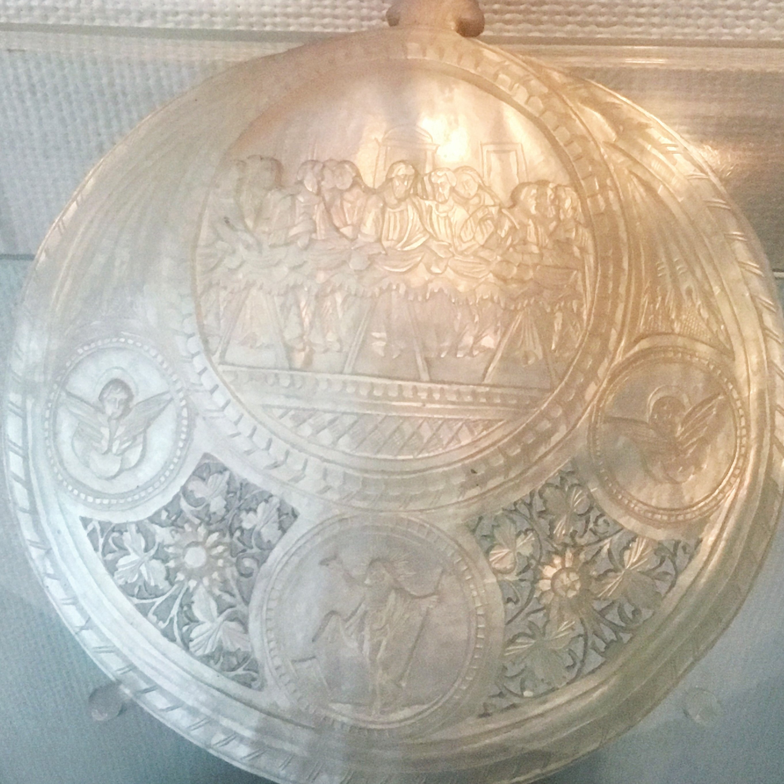 Last Supper Christening Shell Previous Next Published April 25, 2019 at 2723 × 2724 in City of the Lotus (Two Weeks in Macau) A carved Christening Shell featuring a scene of the Last Supper, Macau Museum