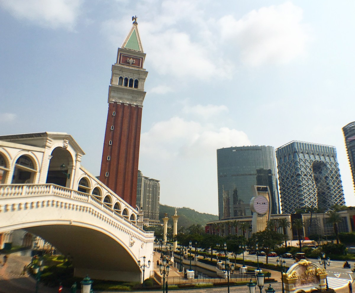 The Venetian & Cotai Strip Previous Next Published April 25, 2019 at 3261 × 2695 in City of the Lotus (Two Weeks in Macau) The Rialto Bridge and Campanile at the Venetian alongside other towers and hotels on the Cotai Strip, southern Macau
