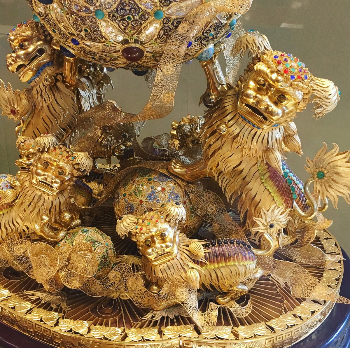 Filigree Lions, Macau Previous Next Published April 25, 2019 at 2747 × 2732 in City of the Lotus (Two Weeks in Macau) Filigree Gold Lions with Ball, presented by Hebei Province, Handover Gifts Museum, Macau