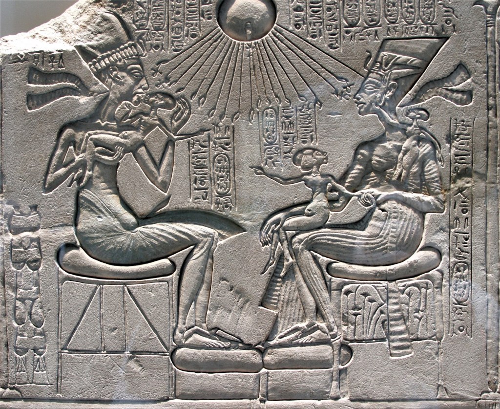 Gedge’s story begins while Amunhotep III is still alive and covers around thirty years, until the restoration of the status quo and the end of the 18th dynasty, so all the famous personalities have their moment in the sun (or ‘under the Aten’?). Tiye is the protagonist: a formidable woman, whose extraordinary reserves of intelligence and political acumen are challenged to the utmost. I knew of her already, thanks to the stunning wooden portrait of her in Berlin, where she is shown with the disc-and-feather Empress’s crown which plays such a central part in the novel. While Nefertiti naturally has a leading role, Gedge doesn’t allow her to dominate: she is petulant, spiteful, ruthless and consumed by her rivalry with Tiye; but, on the other hand, she’s one of the few characters to fully support Akhenaten in his religious convictions. We meet Meritaten, the eldest daughter of Akhenaten and Nefertiti, who appears on so many of the reliefs produced during the Amarna period, which celebrated the tight-knit and affectionate family life of the royal family. And we encounter the enigmatic Smenkhara, whose identity has been so much discussed by scholars, who here becomes Akhenaten’s brother: a spoiled young man who, like the woman he loves, is irreparably damaged by Pharaoh’s controversial beliefs.