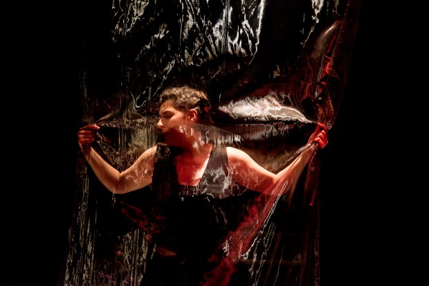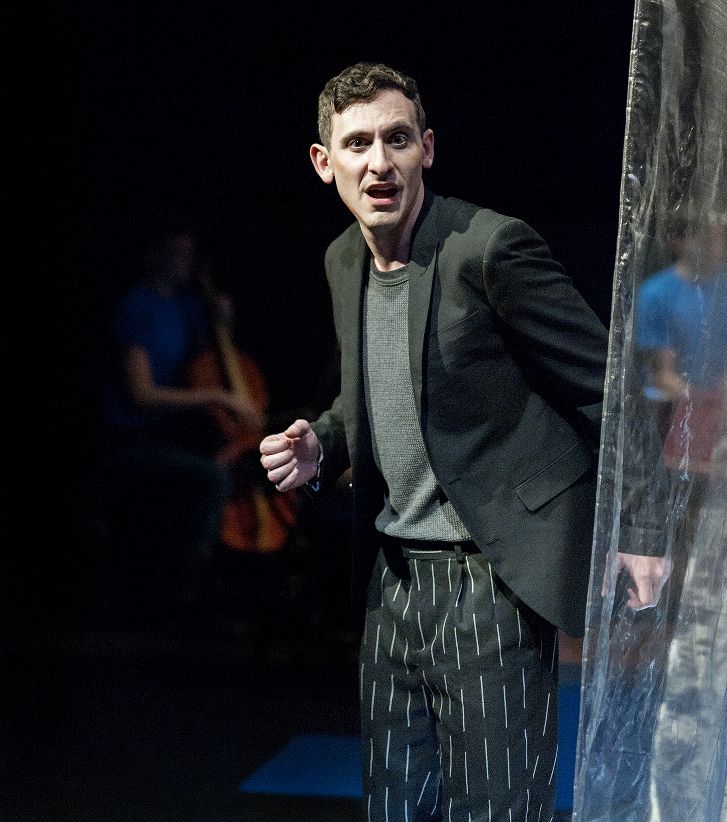 I thought it was worth discussing the plot in detail, because this isn’t a familiar opera and a lot of things happen which aren’t always easy to follow. Partly by choice, and partly by necessity, this production has chosen a very atomised kind of staging. Two large gauze curtains hang down the centre of the stage, emphasising the way that the two couples have been severed (but also, very helpfully, protecting the cast against too much exposure). The choreography does try to accommodate this, by keeping the characters moving, but the fact remains that your view of the action is ‘gauzy’ half the time if you’re sitting on one of the sides of the theatre (as two-thirds of the audience are). The atomisation isn’t just physical but emotional, and this does seem an entirely conscious choice on the part of the director Marcio da Silva. He writes in the programme of his desire to cut out extraneous gesture and focus on the core emotions, but this makes for a rather static and stylised approach. I might have warmed to it more if social distancing didn’t already oblige the cast to sing at some distance from one another, which made it difficult to convey the chemistry between the couples – despite, I must stress, some excellent emotional performances from the cast.