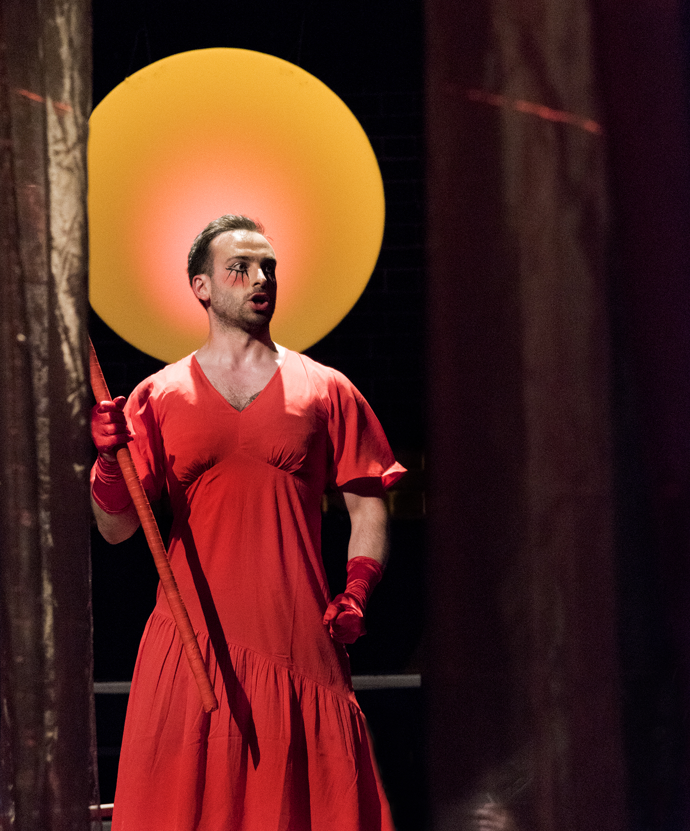 Laurels also go to Kieran White (Egisto), whose gorgeous ‘haut-contre’ tenor was perfect for the musical style, and who switched effortlessly from romantic grace, to agonised grief, and then to outright madness. He’s also a gifted actor (I see that, in the past, he’s played the nurse Arnalta in Poppea, which I bet was a riot). I got the sense that he enjoyed Egisto’s mad scene a lot. As far as I’m aware, I haven’t seen him in anything before, but his name is now very firmly on my watchlist. Honourable mentions also go to Shafali Jalota, a mellifluous and elegant Clori; Stephanie Hershaw, a sparkling Cupid; and Ana Beard Fernández, who sang multiple roles including Phedra and the Fourth Hour, but who caught my eye as a commanding Venus. And, last but by no means least, I thoroughly enjoyed the resonantly supple baritone of James Berry, who mopped up a variety of roles with enormous aplomb – cheerfully cross-dressing as Night and that mysterious figure in red, but also playing a sleek, amused Apollo.