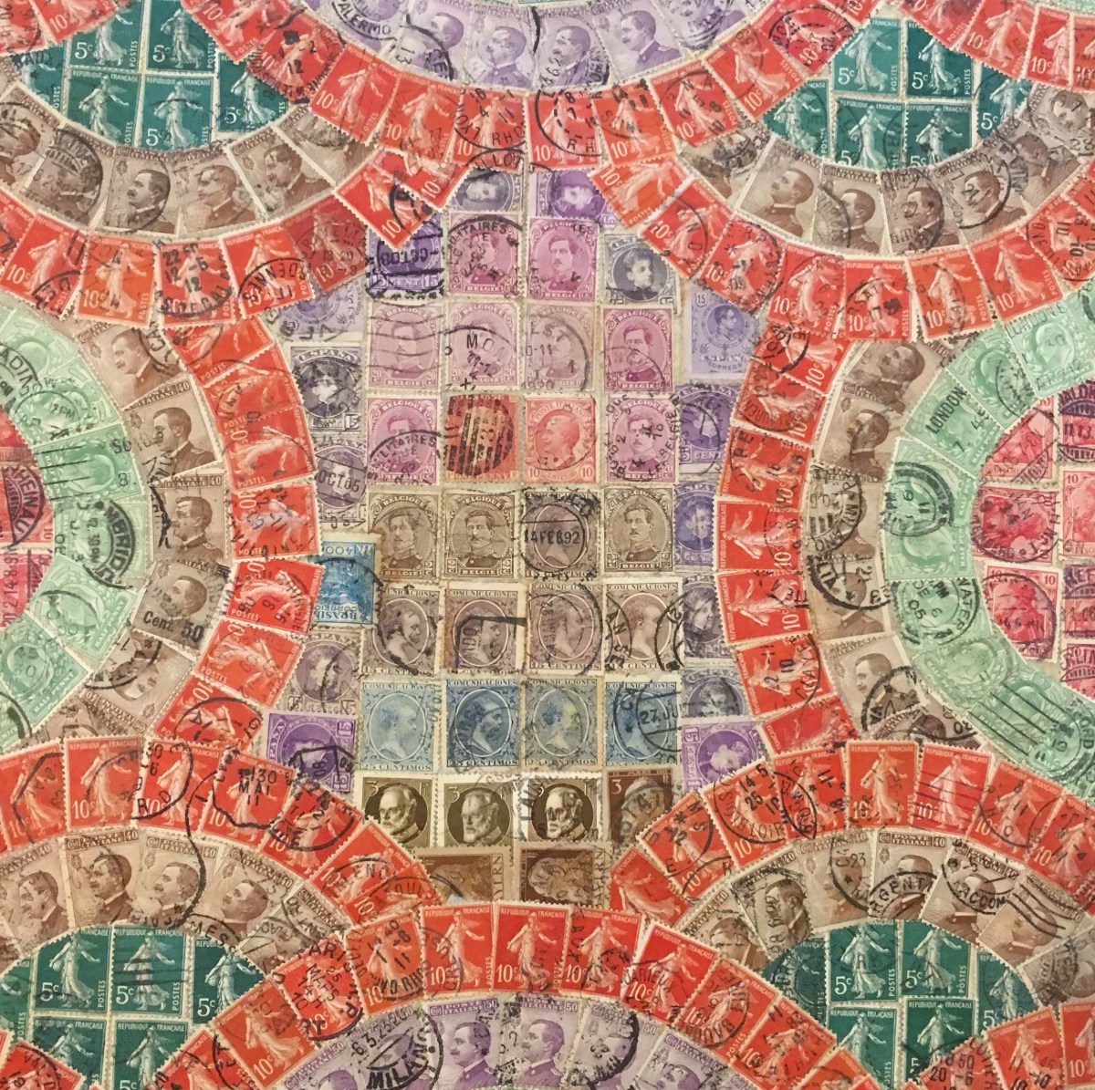 Stamps displayed at Casa Museo di Ivan Bruschi Published July 4, 2017 at 2460 × 2451 A display of Italian postage stamps in an album at Casa Museo di Ivan Bruschi