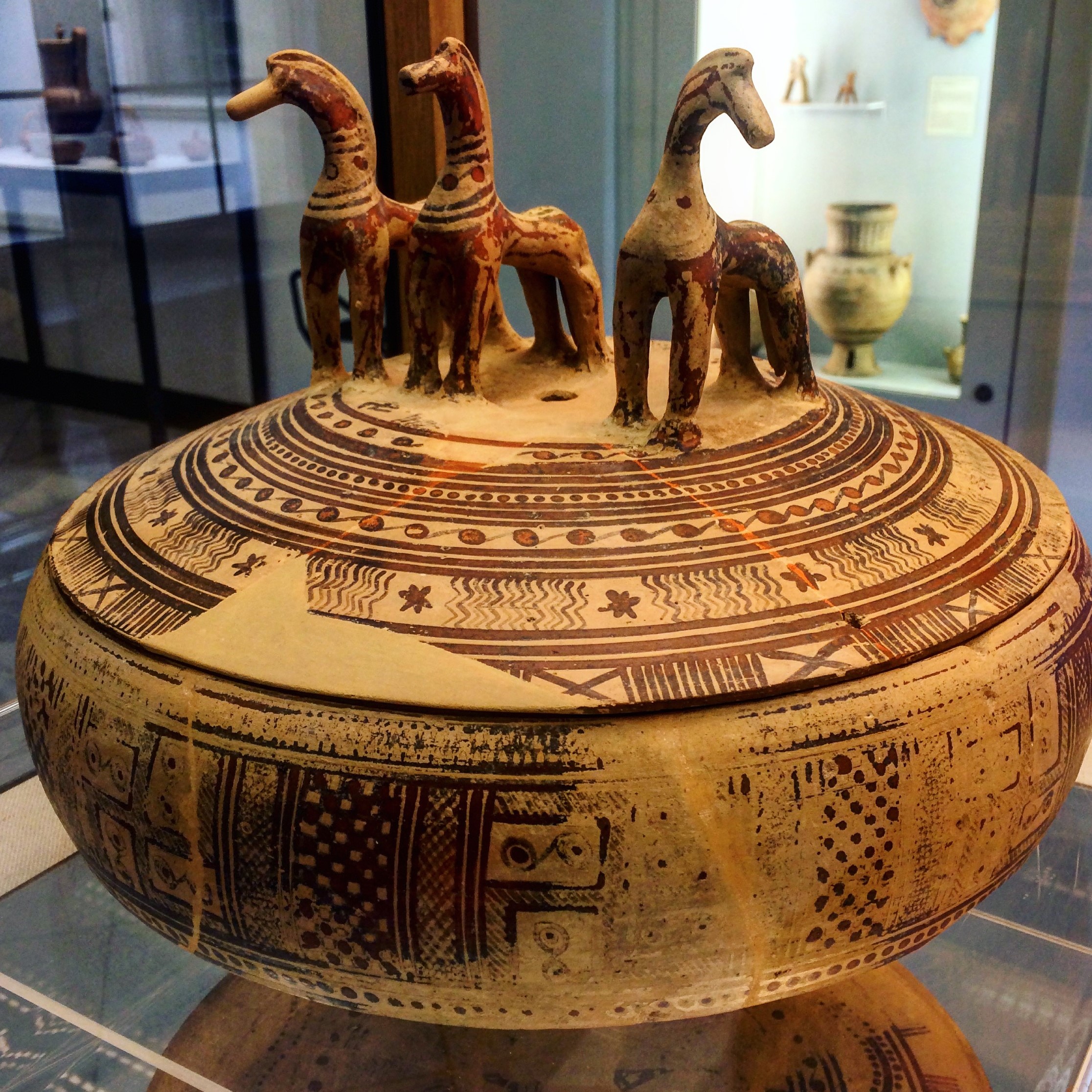 Ancient Greek bowl with horses Published May 30, 2016 at 2232 × 2232 Greek Geometric-period covered bowl with horses, 8th century BC, Martin von Wagner Museum, Würzburg